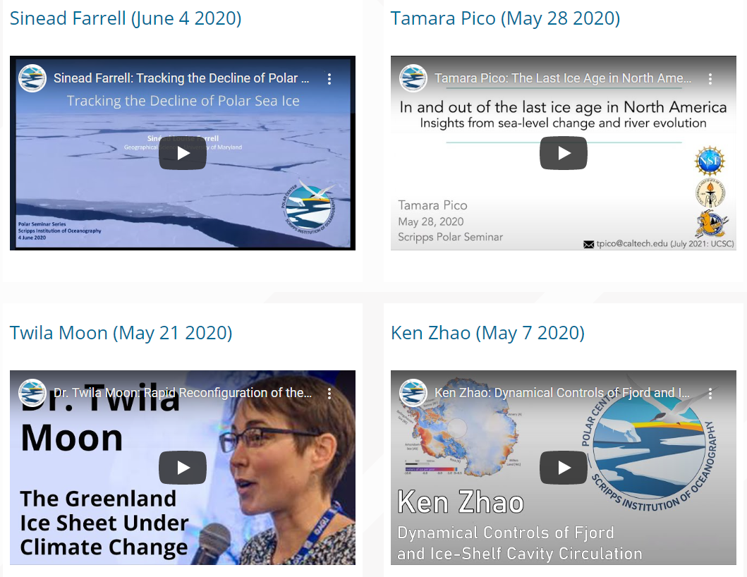 The Polar Center hosts regular seminars during the academic year from researchers in all areas of polar science. Despite the difficulties of transitioning online due to the COVID-19 pandemic, hosting seminars on Zoom allowed us to easily record and upload talks to the Polar Center YouTube channel. I've made all the recorded seminars available on the Activities page, featuring some graphic design work for the thumbnails.